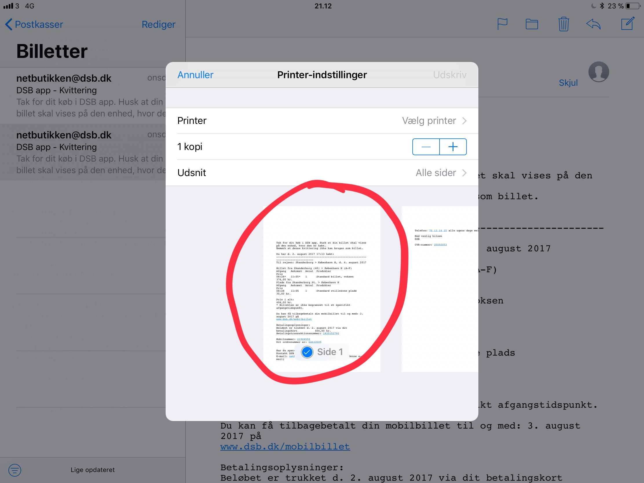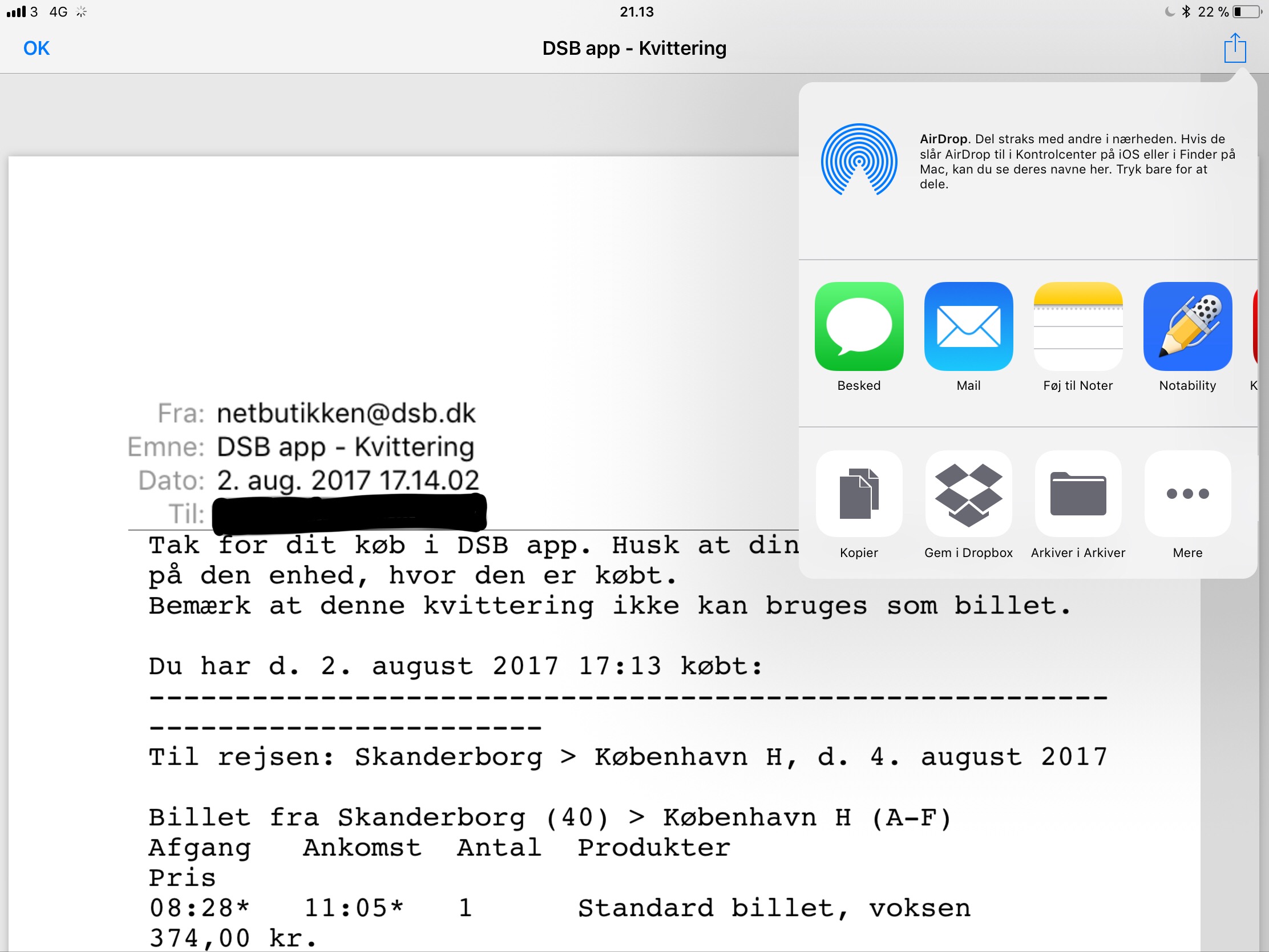 Jeg har fået en kvittering fra DSB pr. mail, og den skulle jeg lave om, så jeg kunne sende den med en anden mail.